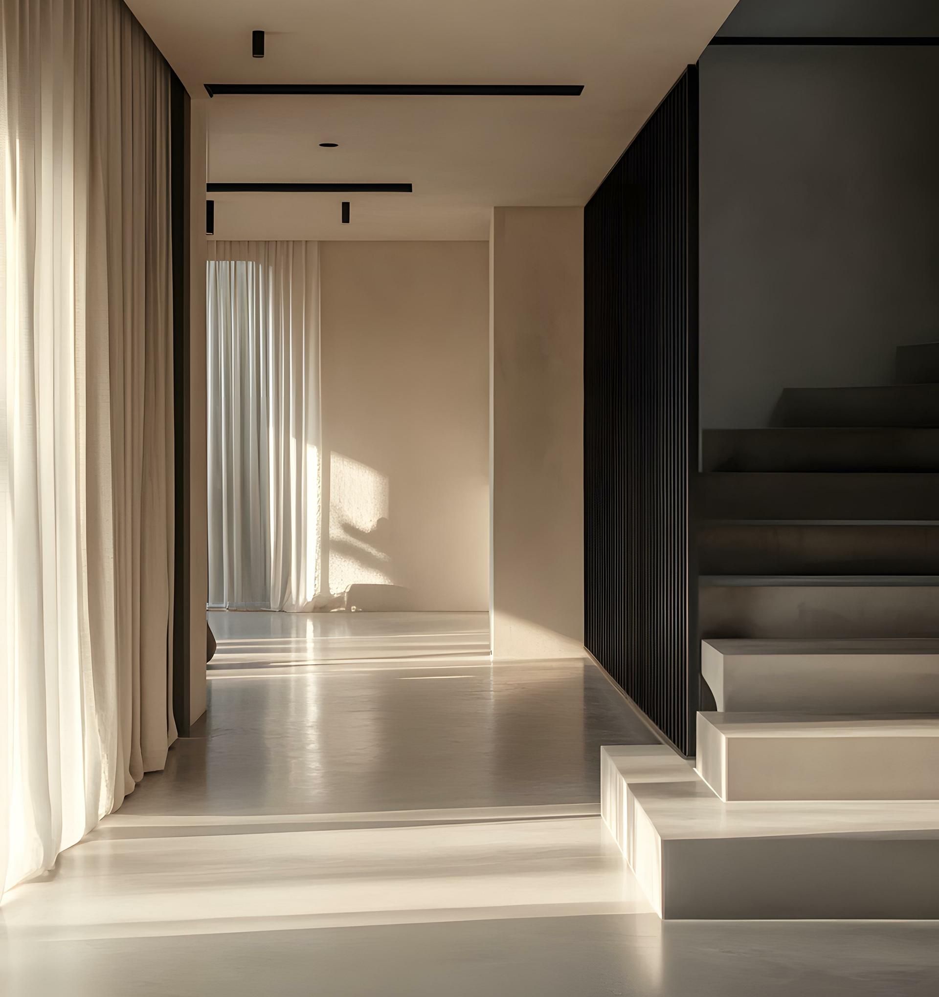 A paleta de cores é composta por tons neutros e terrosos, inspirados na integração harmoniosa da arquitetura com a natureza e a luz natural, criando uma sensação de calma e serenidade em cada aplicação. A tipografia, por sua vez, segue um estilo moderno e refinado, garantindo legibilidade e sofisticação em todos os materiais de comunicação.
