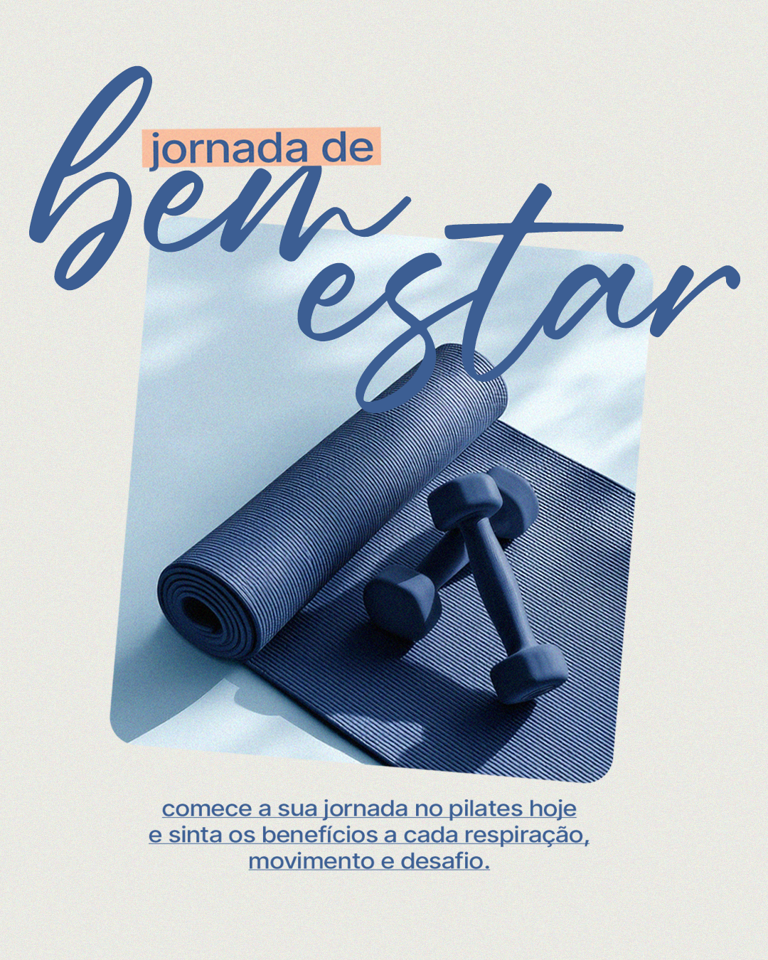 Na tipografia, misturei uma fonte manuscrita, mais expressiva e emocional, com uma sans serif limpa e objetiva, criando contraste e hierarquia: o script chama a atenção para as palavras-chave, enquanto a fonte reta deixa as mensagens fáceis de ler, especialmente em redes sociais. O resultado é um feed que conversa com diferentes públicos, mas sempre com a mesma mensagem: pilates como um momento de conexão consigo mesmo.