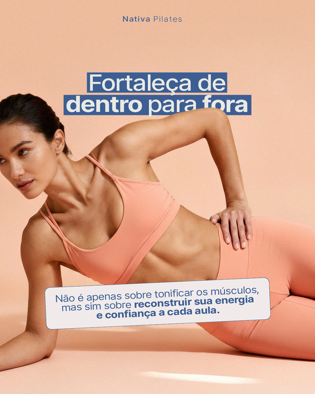 Esse projeto foi criado para a Nativa Pilates com a ideia de traduzir, em imagem, tudo o que a marca oferece: cuidado, leveza e força de dentro pra fora. Trabalhei com fotos que mostram o corpo em movimento real, em momentos de concentração, alongamento e bem-estar, para que as pessoas se vejam ali e sintam vontade de fazer parte.